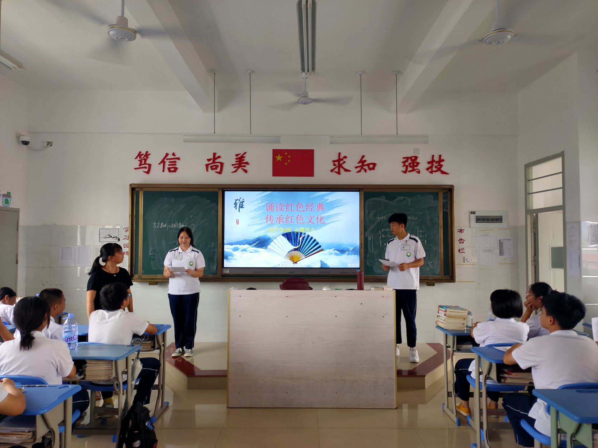七月是一个特别的月份,七月的开始,是党的生日。为缅怀革命先烈,传承红色文化,19升学4班于7月10日下午第三节,在班主任林秋娟老师的组织下,开展了一次以“诵读红色经典,传承红色文化”为主题的诵读会。