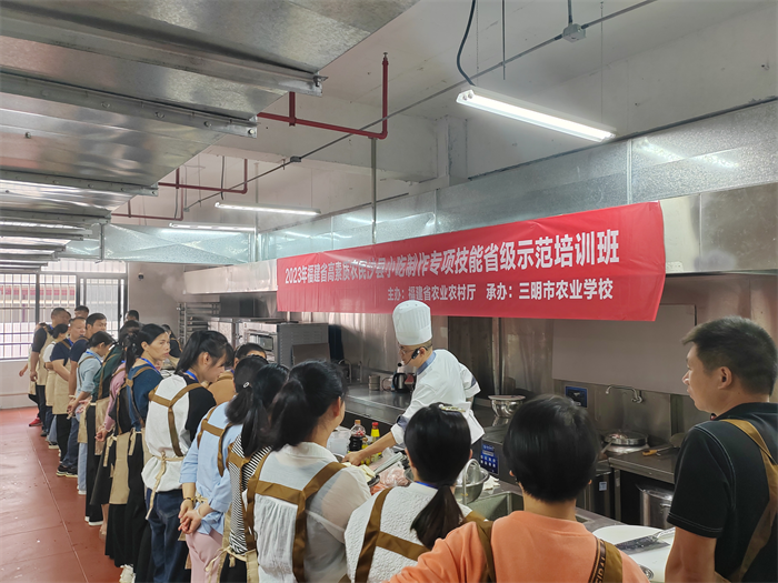 近年来,三明农校主动对接行业企业共同设计实施“订单式”“菜单式”课程匹配,提高沙县小吃经营人才培育精准度,提升培训工作的针对性和实效性。为此,三明农校承办的三期2023年高素质农民沙县小吃省级示范培训班中,除本期的沙县小吃制作专项技能培训班外,还开设了两期沙县小吃菜品升级经营提升班,将于近期陆续开班。