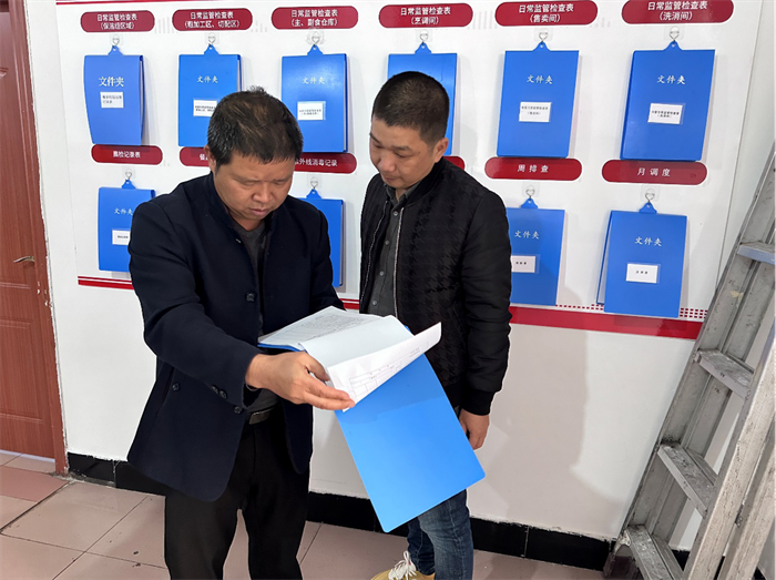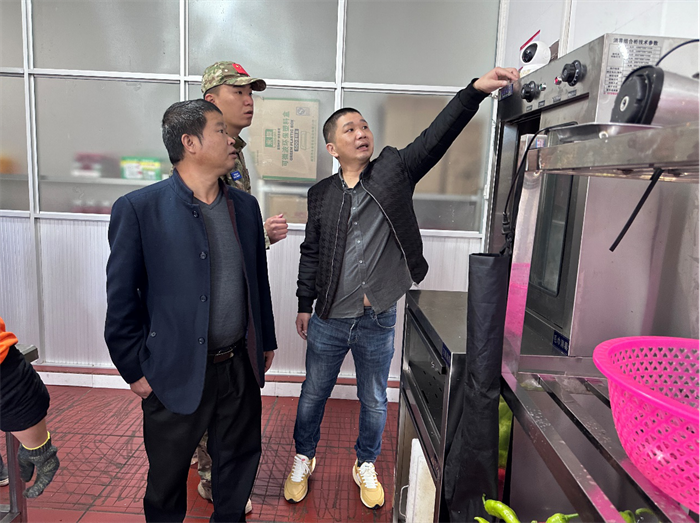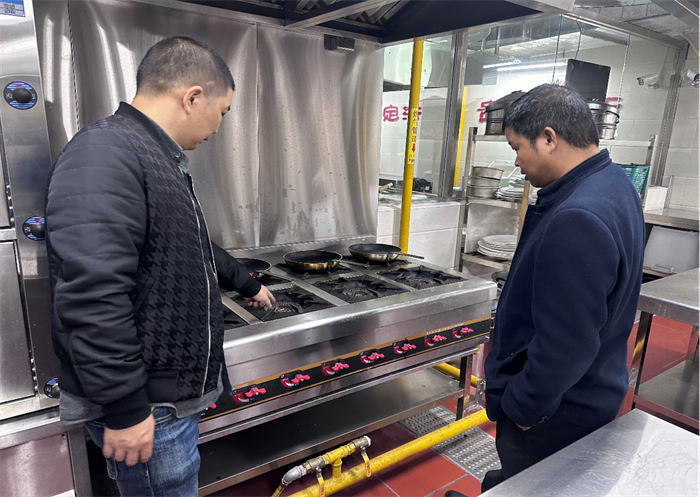 在排查过程中,检查组首先检查了食堂烹煮设备的日常使用情况,并对食材仓库的冷库温度、食品质量、仓储条件、后厨卫生、员工操作规范、刀具使用、用水用电等方面一一排查,同时还检查消防设施设备的维护情况。