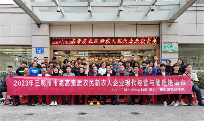 “新农人”是乡村振兴的生力军,为进一步提升他们的经营管理能力,加快推进农业农村现代化和绿色发展,12月9-15日,2023年三明市市级高素质农民(新农人企业现代经营与管理)培训班在三明市三元区顺利举办。