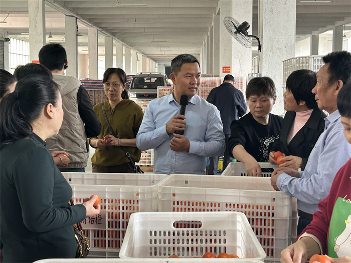 学员在清语橙果业科技有限公司观摩学习,清语橙品牌创始人徐良辉作交流介绍