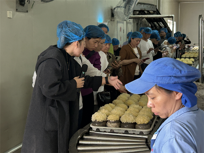 学员在福建祥云科技发展有限公司观摩学习食用菌工厂化生产