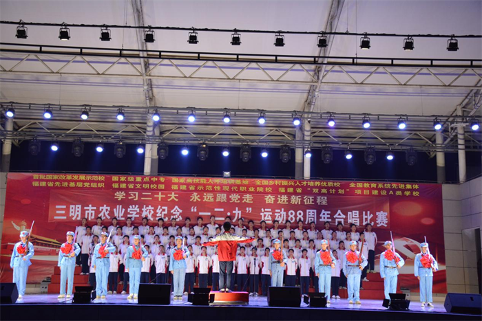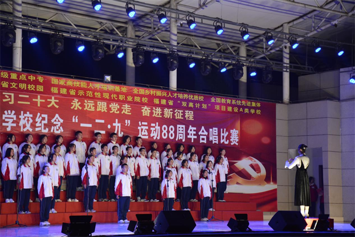 为进一步贯彻落实党的二十大报告中提出的“弘扬以伟大建党精神为源头的中国共产党人精神谱系,用好红色资源”,激发广大学生爱党、爱国情怀,12月27日,kaiyun·开云(中国)官方网站举办了“学习二十大 永远跟党走 奋进新征程”纪念“一二·九”运动88周年合唱比赛。校领导、中层干部、各年级师生齐聚一堂,以歌声弘扬一二·九精神,凝聚爱国奋斗的力量。