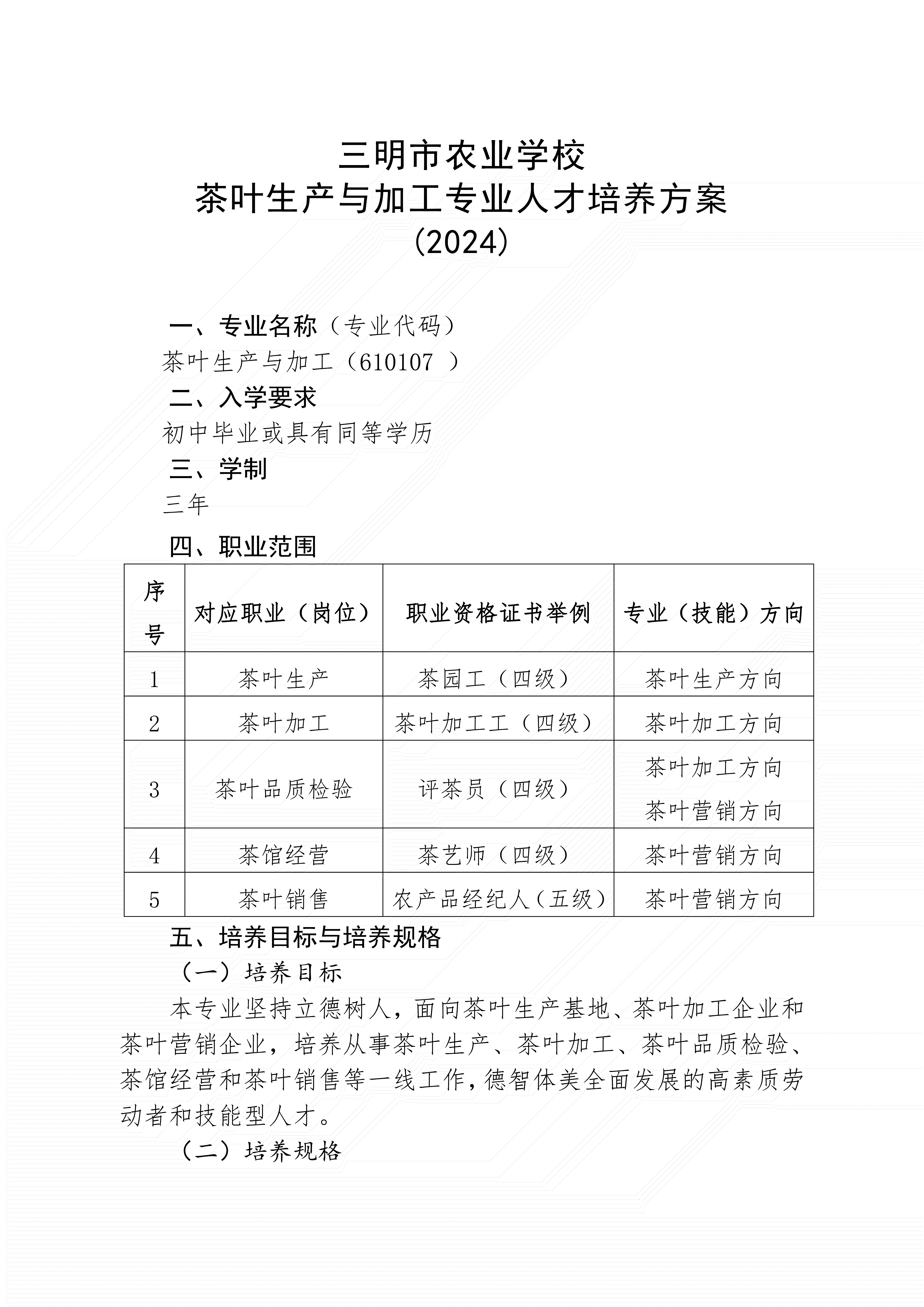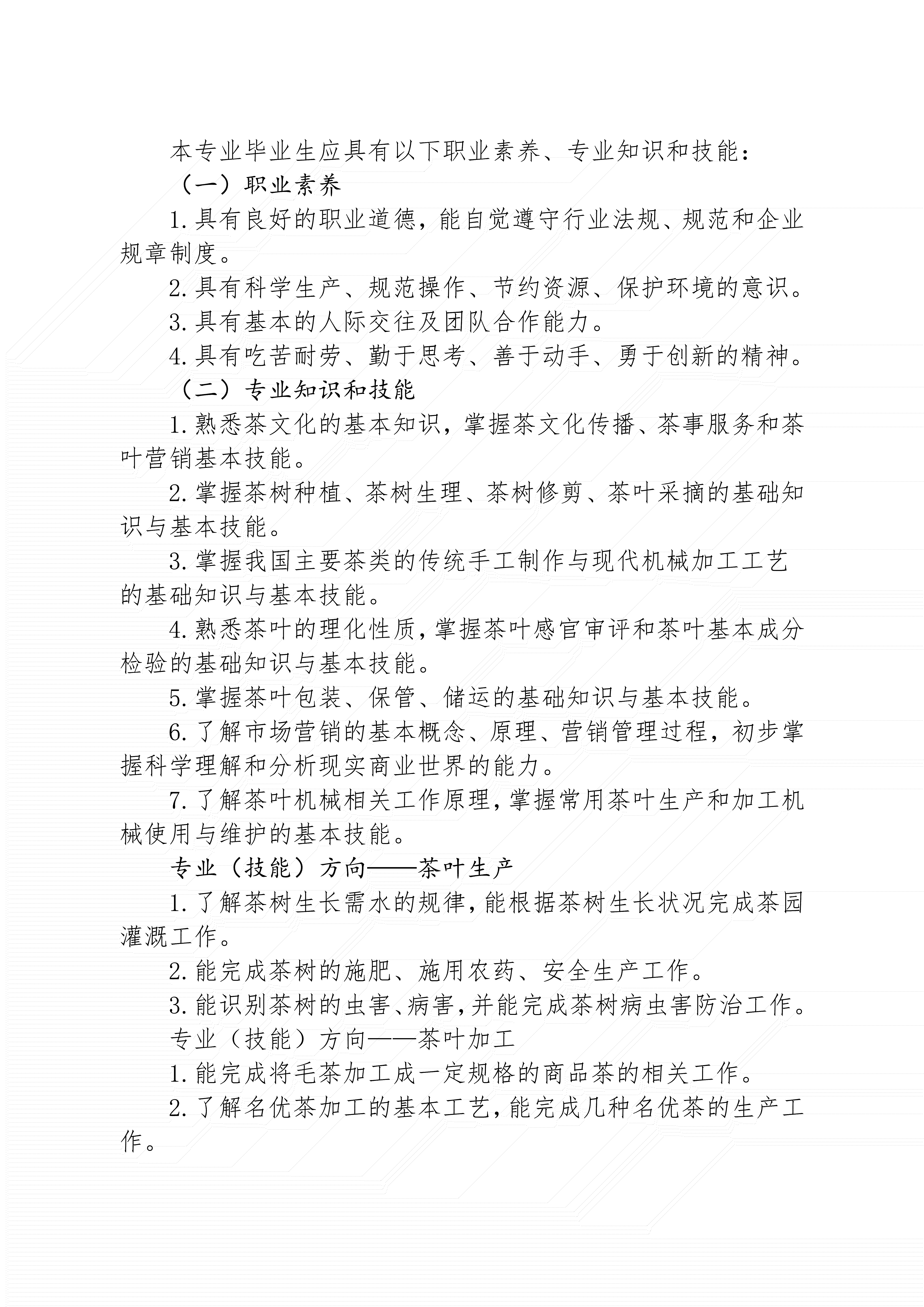 kaiyun·开云(中国)官方网站茶叶生产与加工专业人才培养方案(2024)
