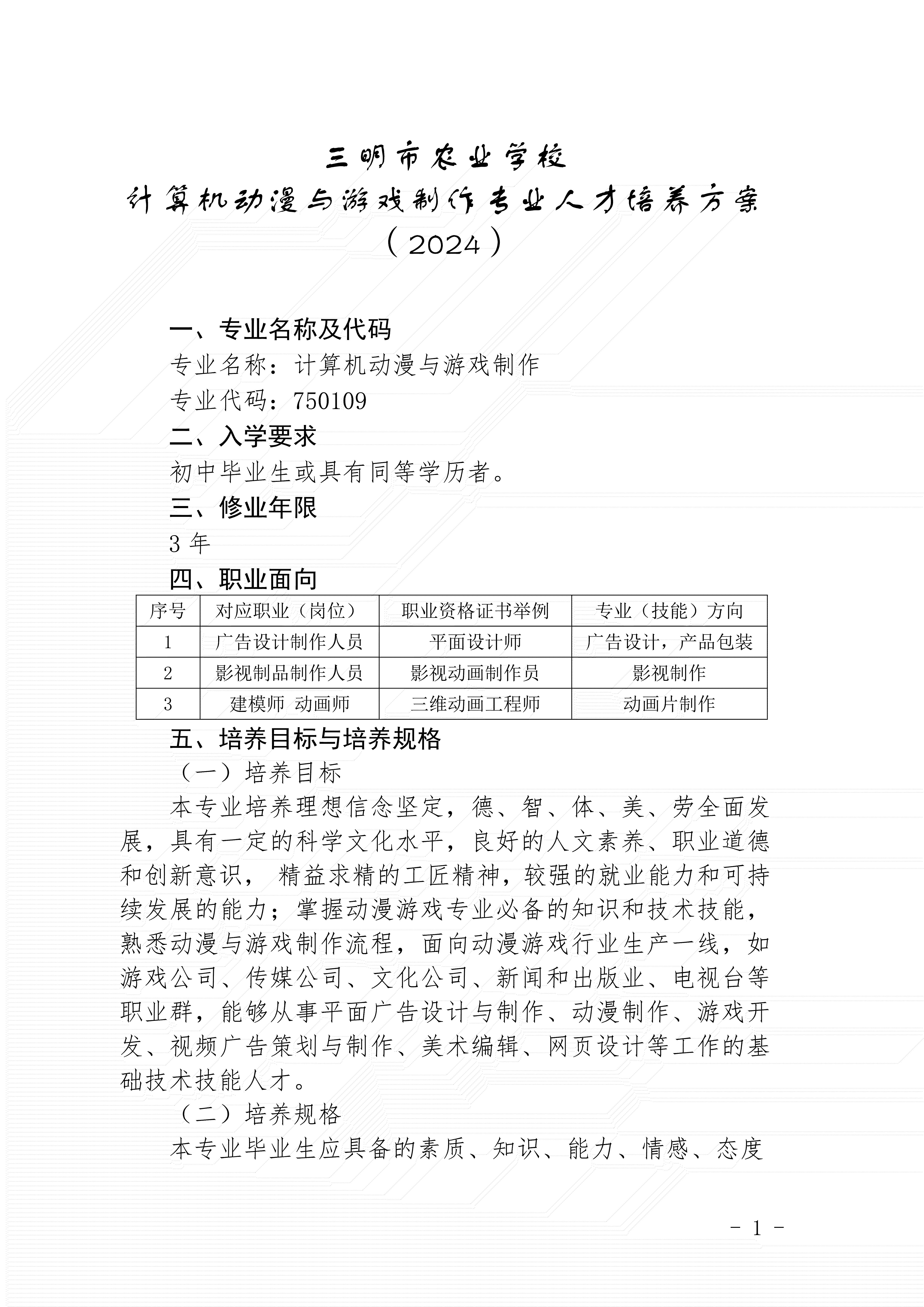 kaiyun·开云(中国)官方网站动漫与游戏制作专业人才培养方案(2024)