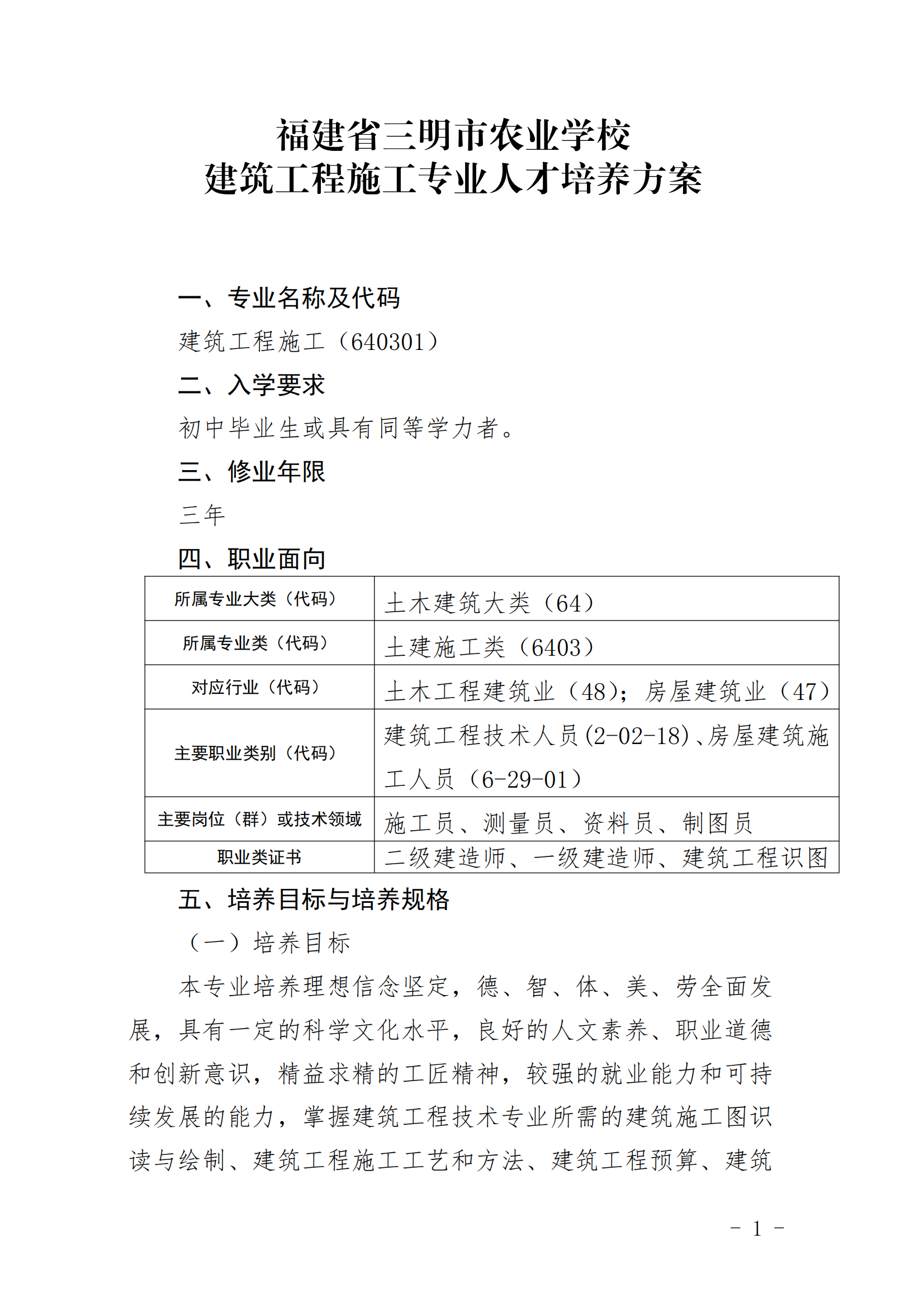 福建省kaiyun·开云(中国)官方网站建筑工程施工专业人才培养方案
