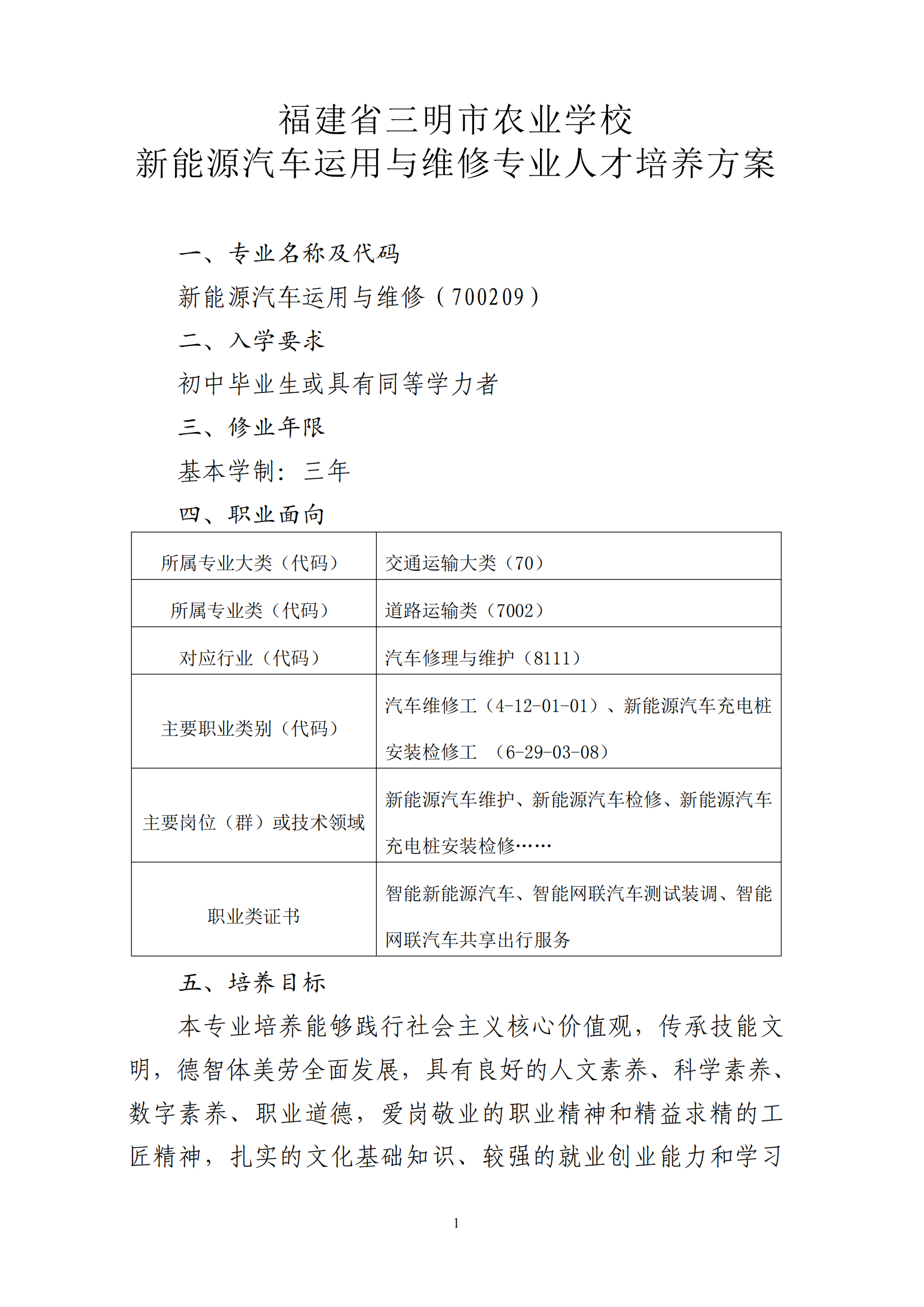 福建省kaiyun·开云(中国)官方网站新能源汽车运用与维修专业人才培养方案