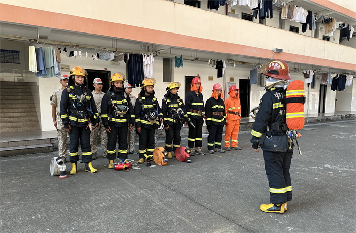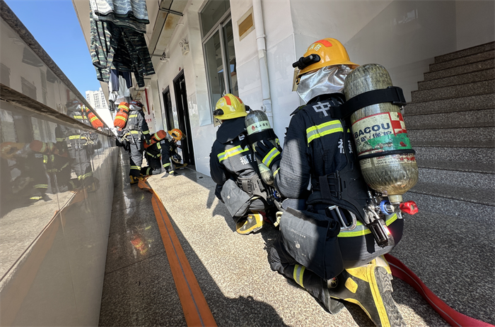 为检验校园应急预案的可行性和校园微型消防站救援灭火能力,联合检查小组开展消防应急救援演练。火情模拟为学生在宿舍区违规使用大功率电器而造成的火灾,微型消防站专职消防员抵达现场后发现火情处于发展阶段,遂拨打119火警电话,消防救援大队赶到现场进行灭火处理。